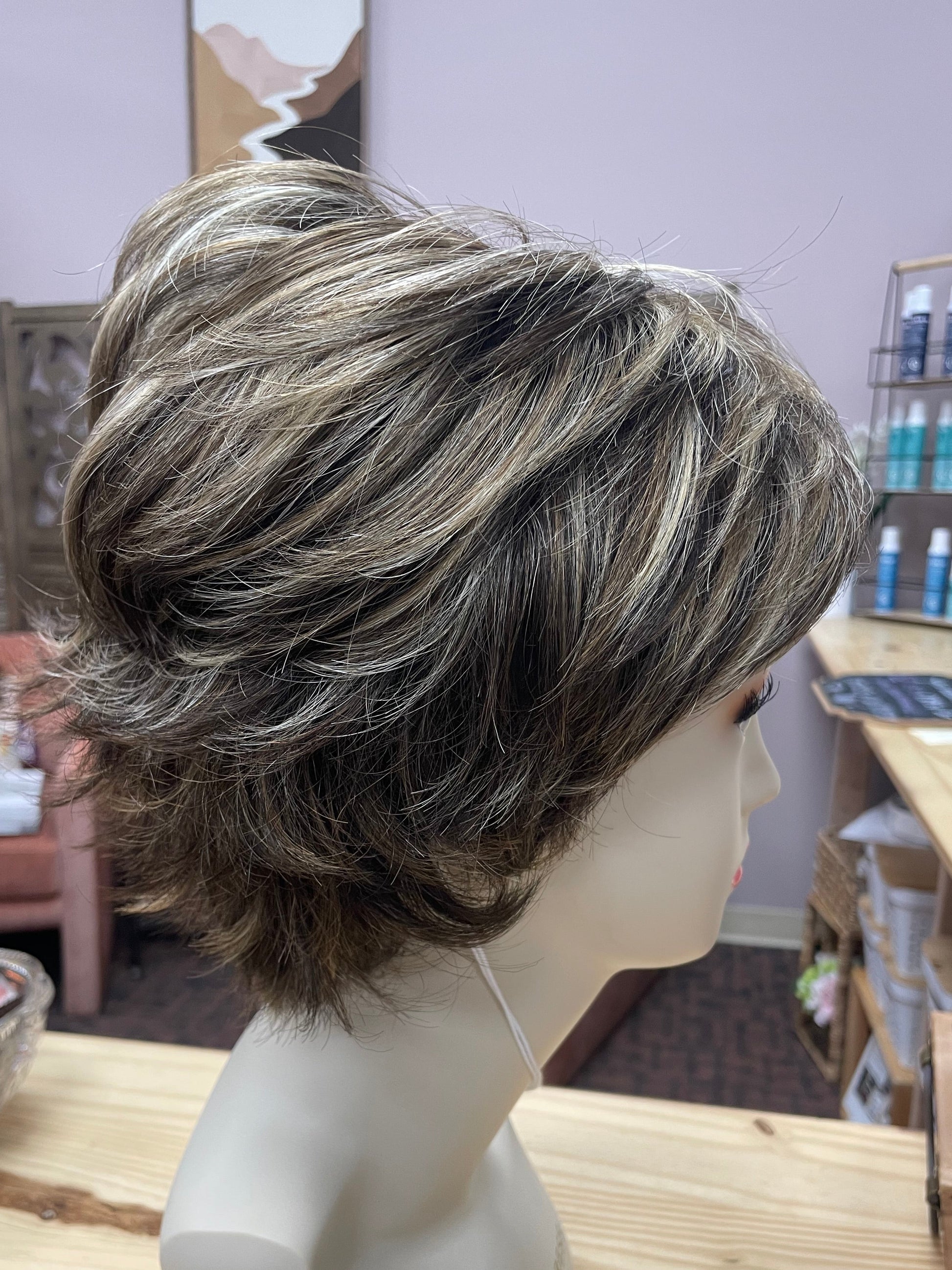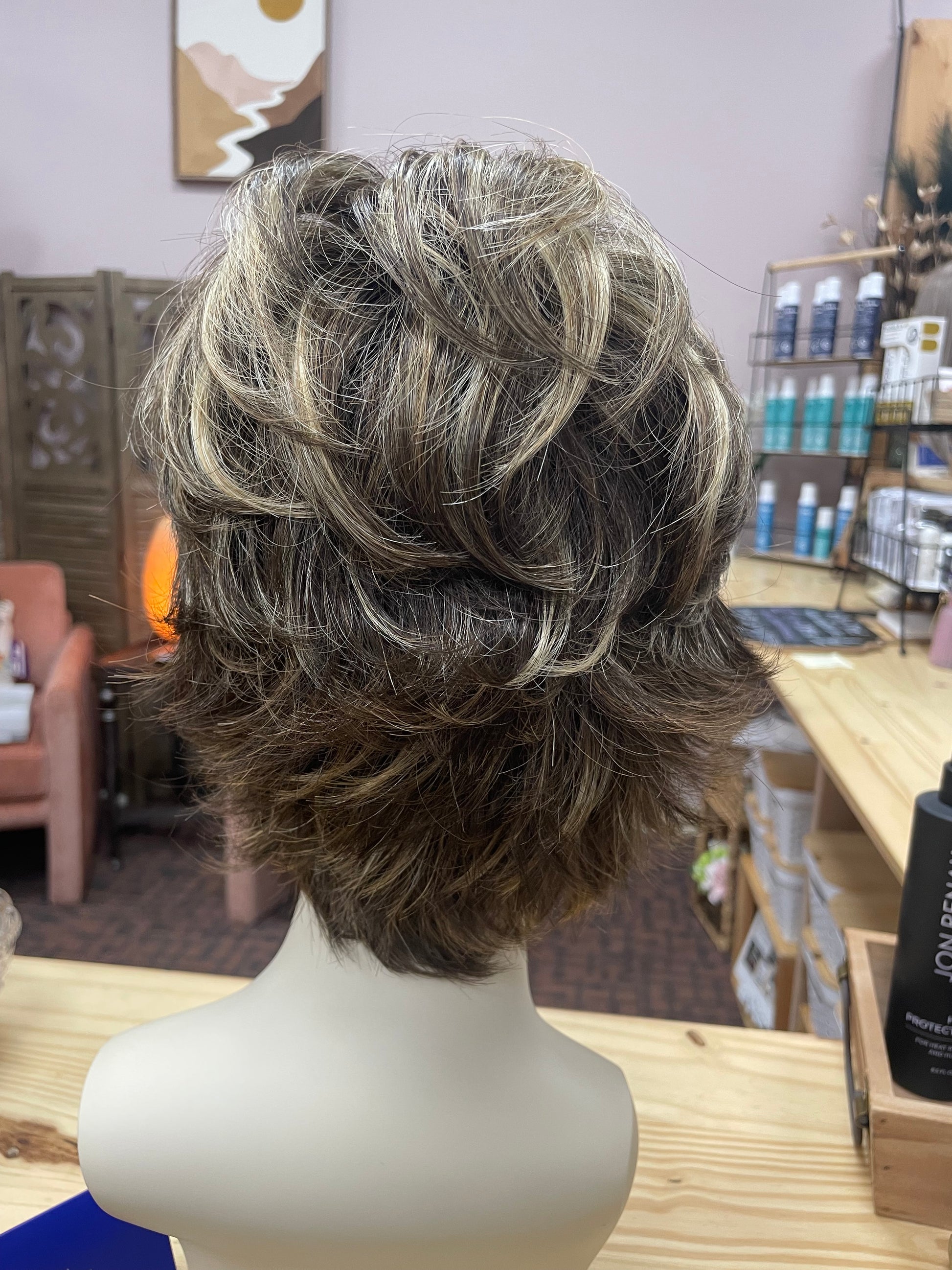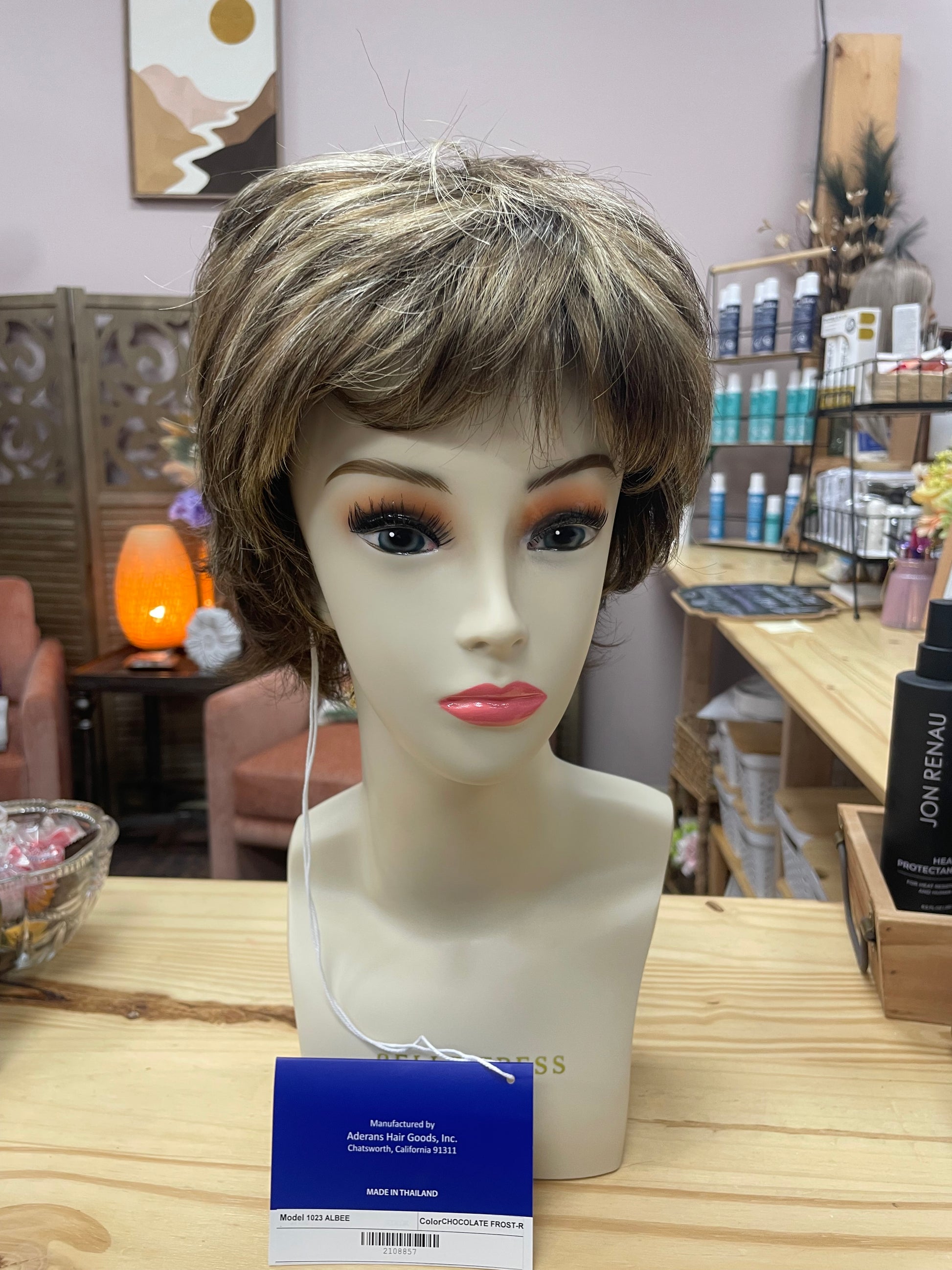 Wig may have been tried on briefly for live sales, photos, or boutique display
