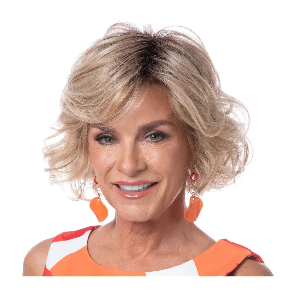 The Toni Brattin Casually Chic Wig features short to mid-length subtle layers of natural looking waves. Stylish side-swept bangs finish this modern, effortless and savvy look.