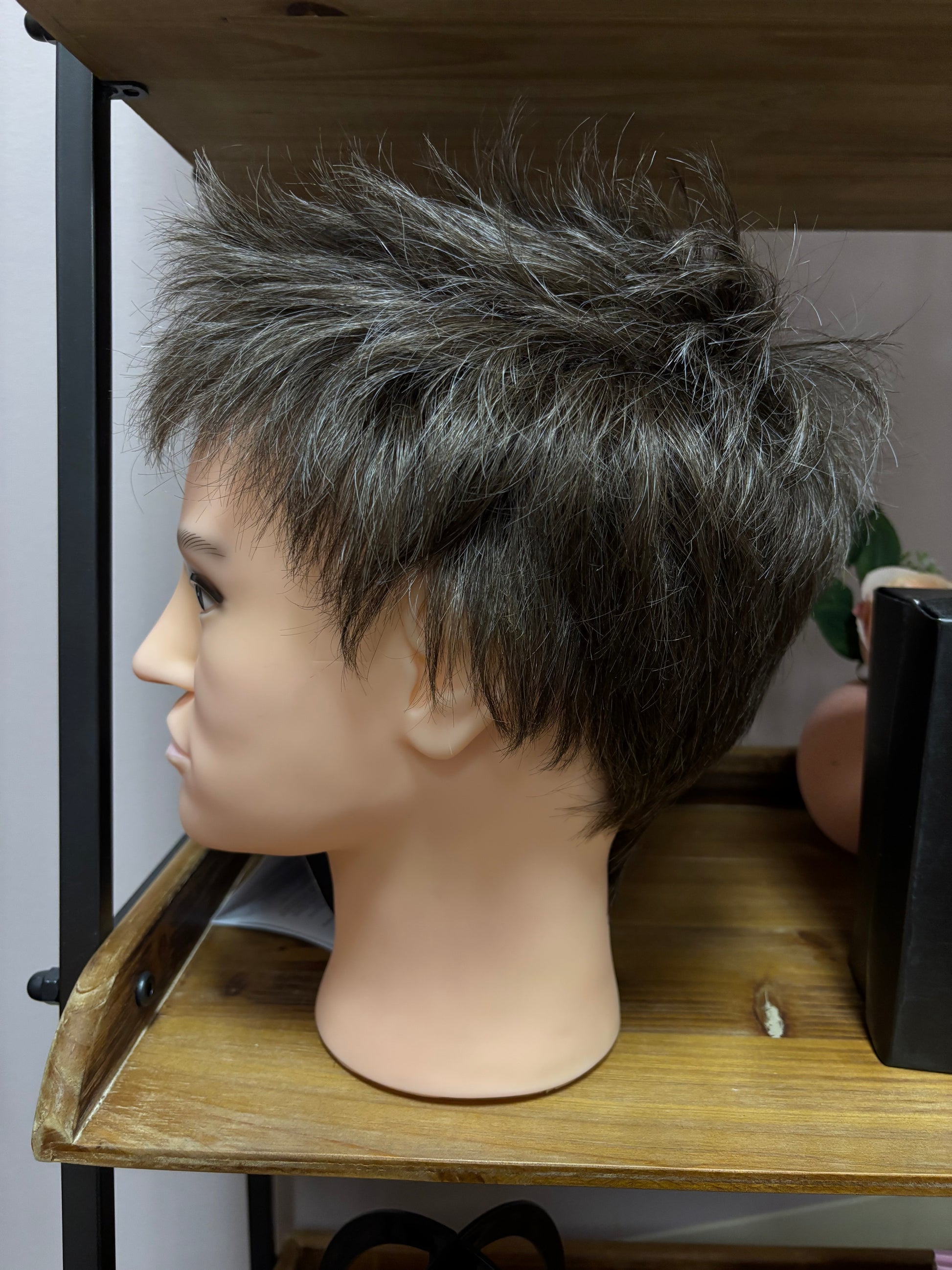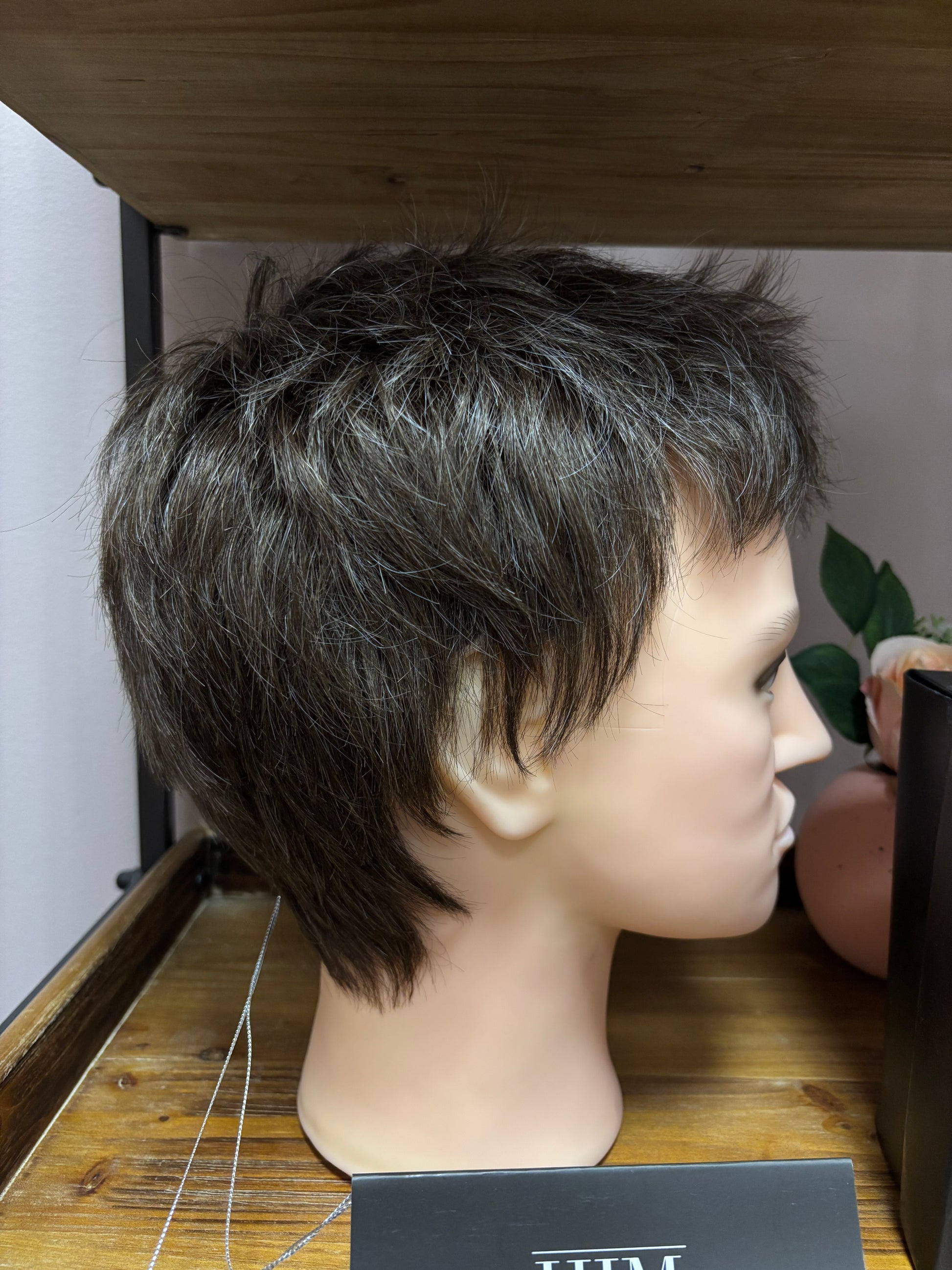 Dapper is the perfect blend of confidence and cool — a short men’s cut with soft textured waves that can be styled piecey, full, smooth, or spiked. The incredibly natural lace front (designed specifically for HIM styles) gives you a realistic hairline whether you wear it forward or brushed back. Clean cropped layering through the sides and back keeps the look sharp and modern.