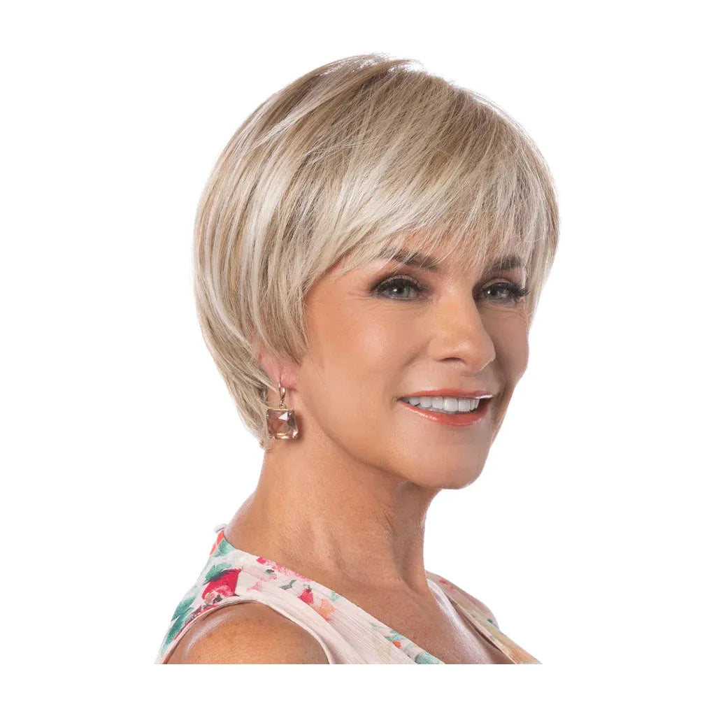 The Contemporary Bob Wig is a contemporary take on a classic bob cut with added fullness and length in the crown and sides that blend naturally into a precision-cut, tapered neckline. Casual yet elegant, this bob wig includes fashionable feathered bangs and salon-inspired styling that will surely get you noticed.