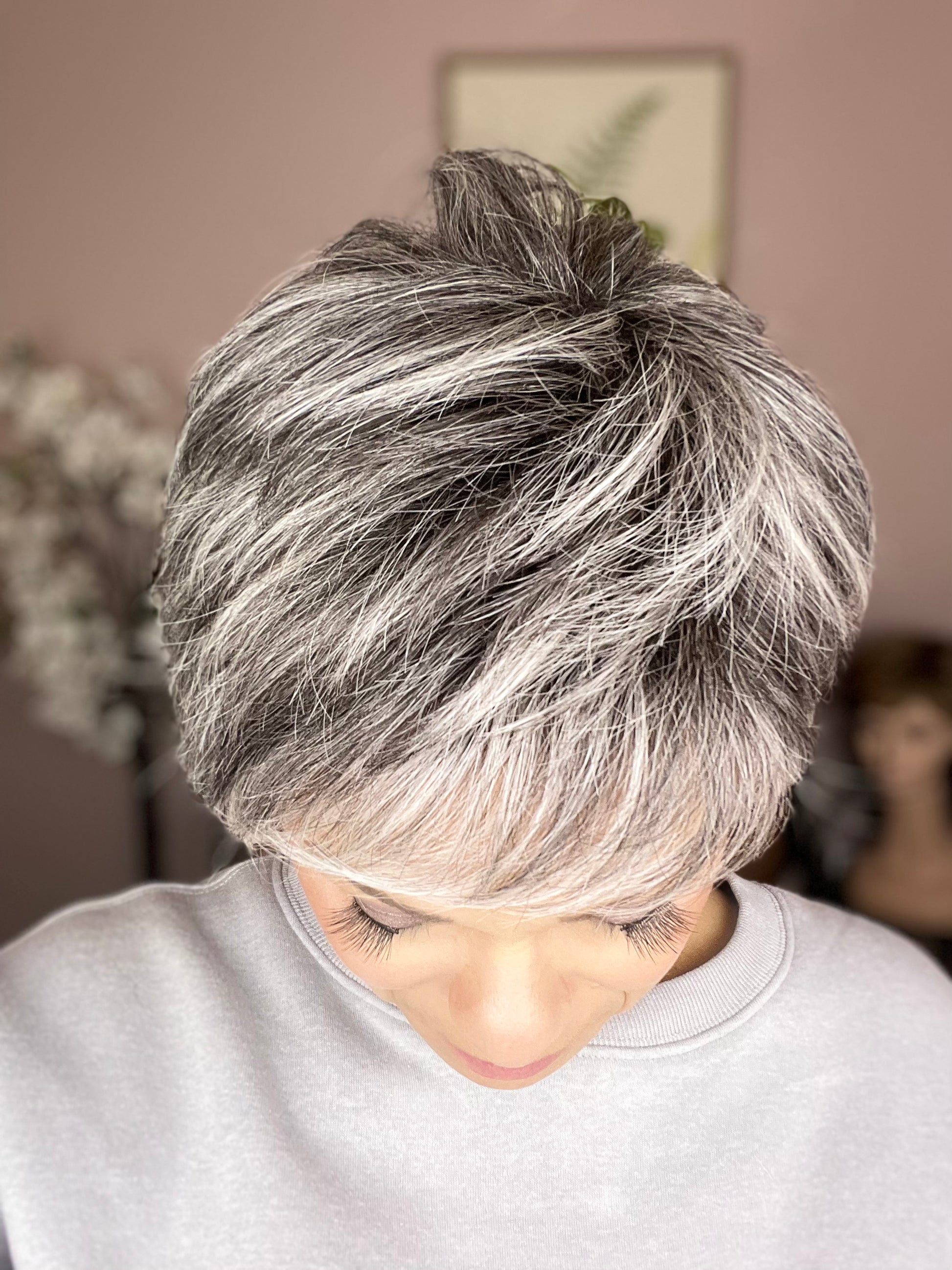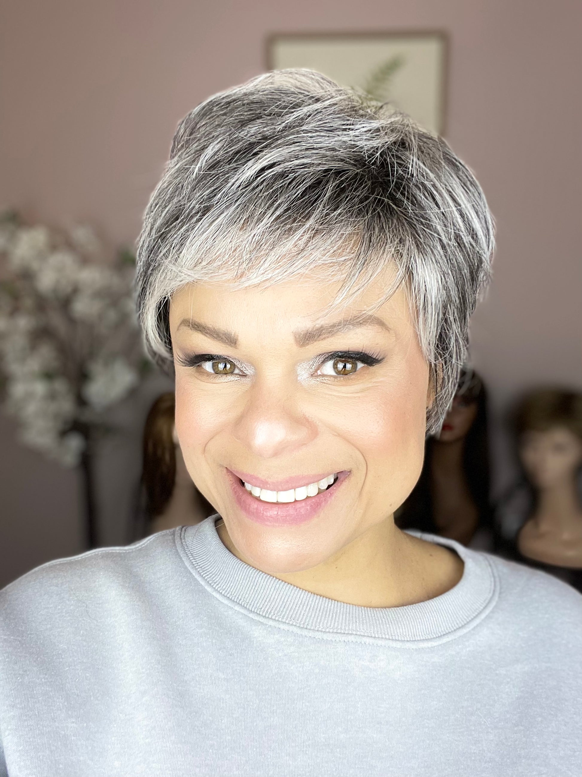 • Soft, layered pixie with face-framing movement