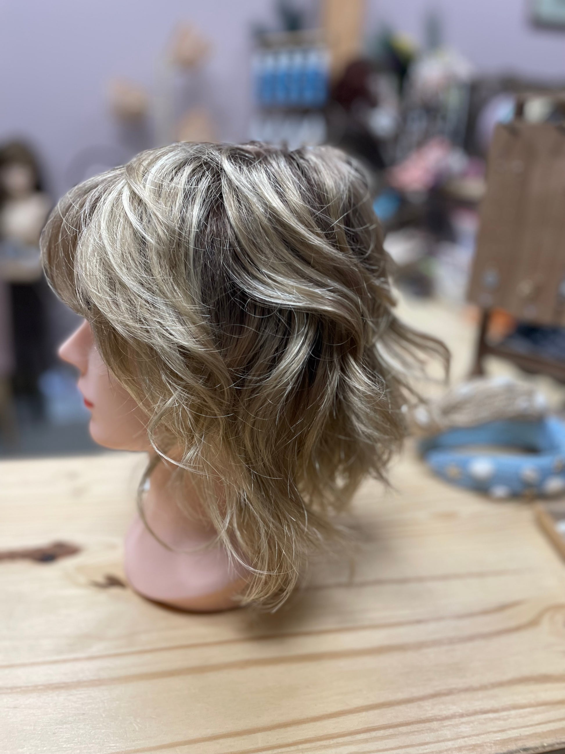 This new wig could have been tried on by the owner for a live sale or photos. This wig is in stock, ready to ship, and is a final sale.