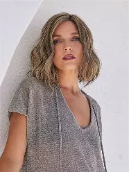 Merrill from our Noriko Collection is a stunning, neck-length style featuring a truly unique and modern beach wave. You will absolutely want this wig! It's perfectly suitable for both daily wear and special occasions. Merrill is crafted from our newest NM (Natural Movement) fiber, a perfect blend of high-quality synthetic and heat-friendly fibers. This innovative blend reduces the shine often caused by heat-friendly materials for a more natural look. With a lace front and lace part, plus adjustable tabs, Merrill provides a comfortable fit and a seamless, natural appearance.