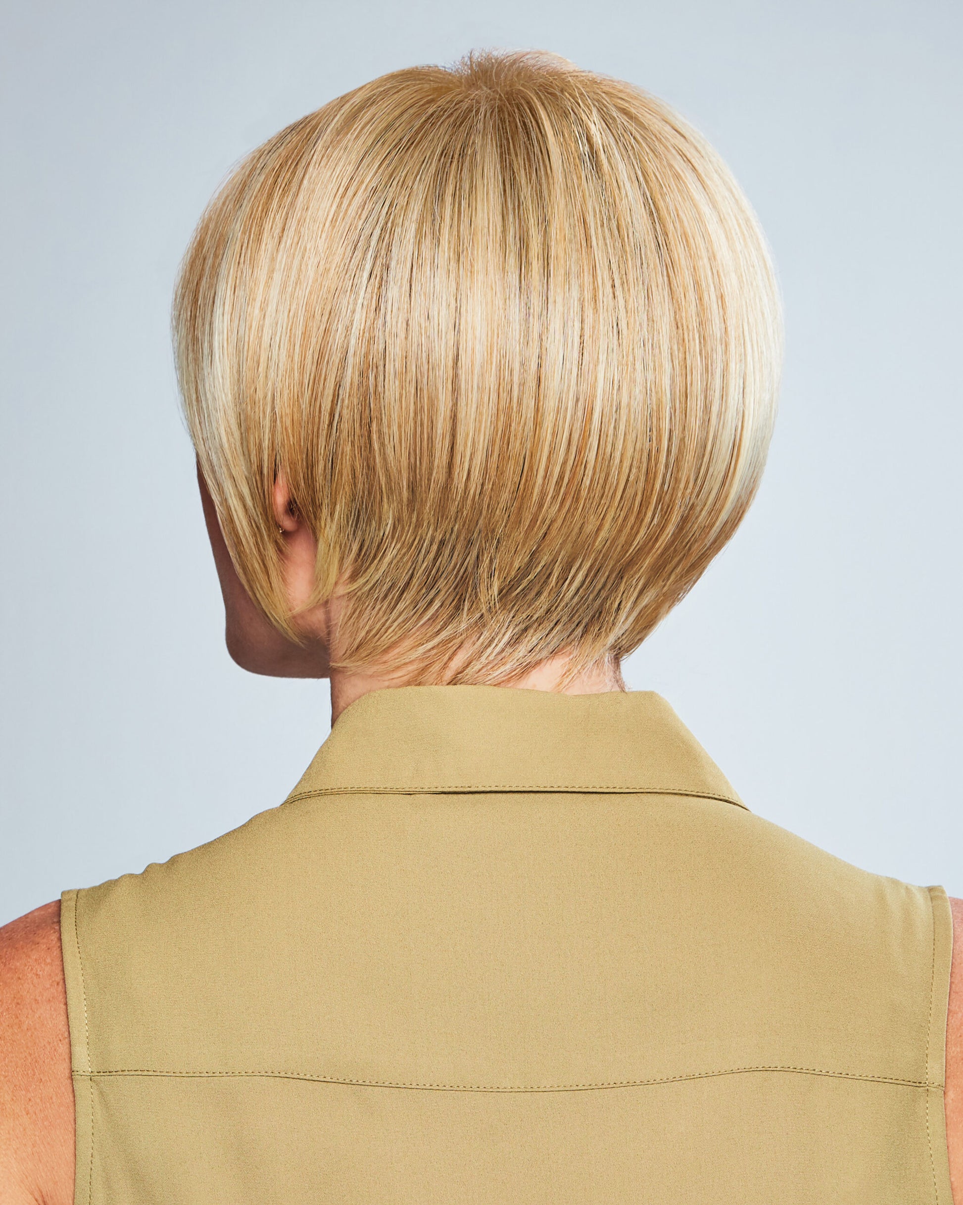 Thrill is an updated, tapered bob featuring softly textured layers and a monofilament crown that provides natural volume and movement through the top. This versatile style features longer side layers that can be worn forward to frame the face or tucked behind the ears for a sleek look. The style is finished with a flirty bang and a neatly sculpted, form-fitting nape for a polished silhouette. Crafted with ExcelleĀ® Heat-friendly Synthetic Hair, you have the freedom to customize your texture with heat tools.