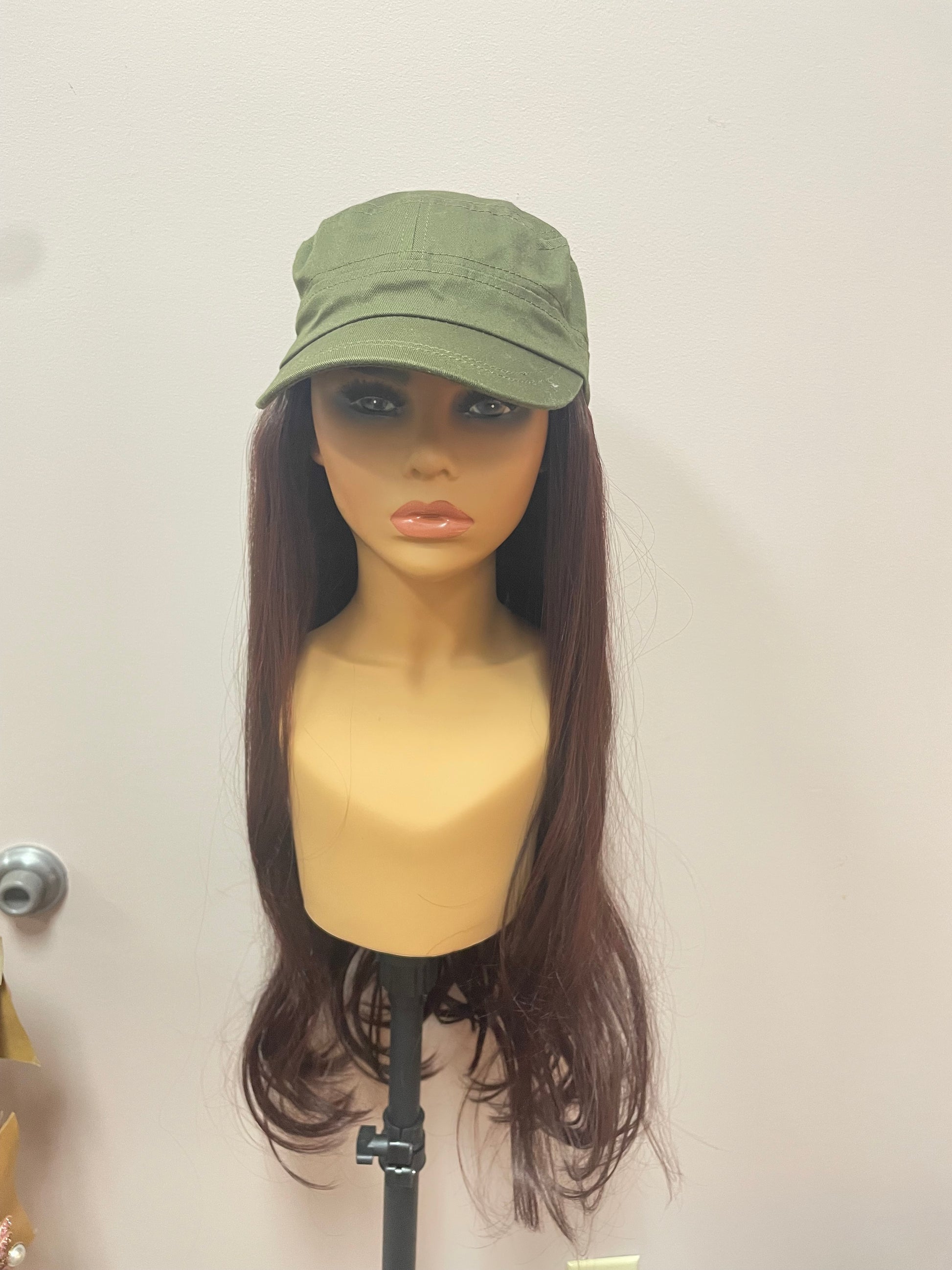 • Olive green Army CapDo (cap + hair)